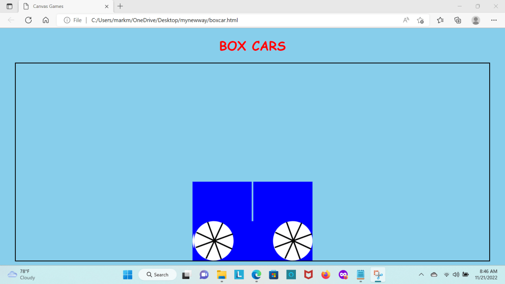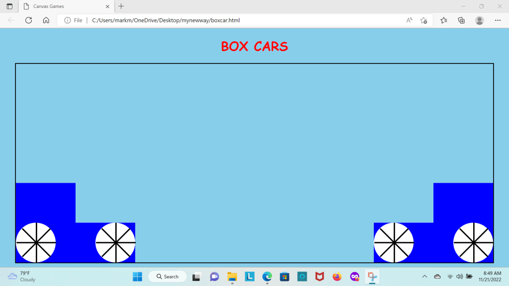 I finished a web page that used keyframe animations. I created a class called boxcars and put 4 divs inside them 2 divs were rectangular and the color blue. two divs I made round used the color white and then I used five divs for spokes. I positioned the two box cars and had the move across the page using keyframe animation.