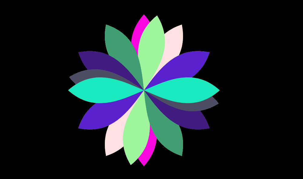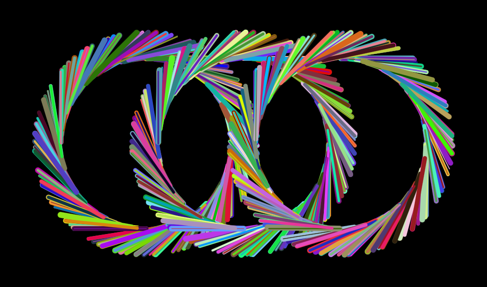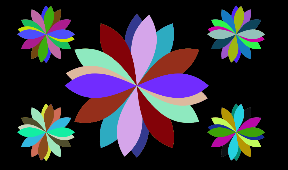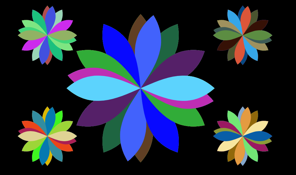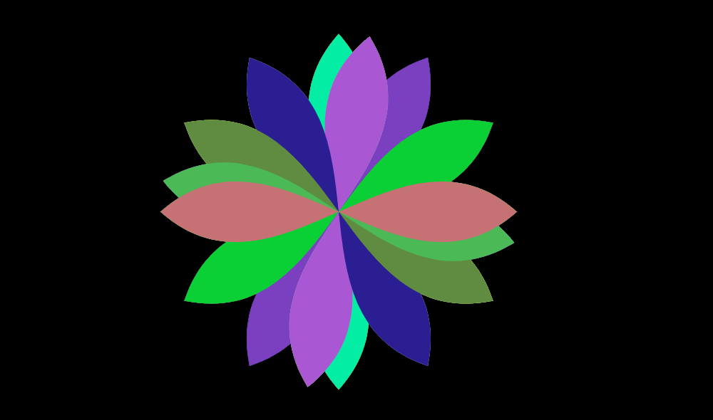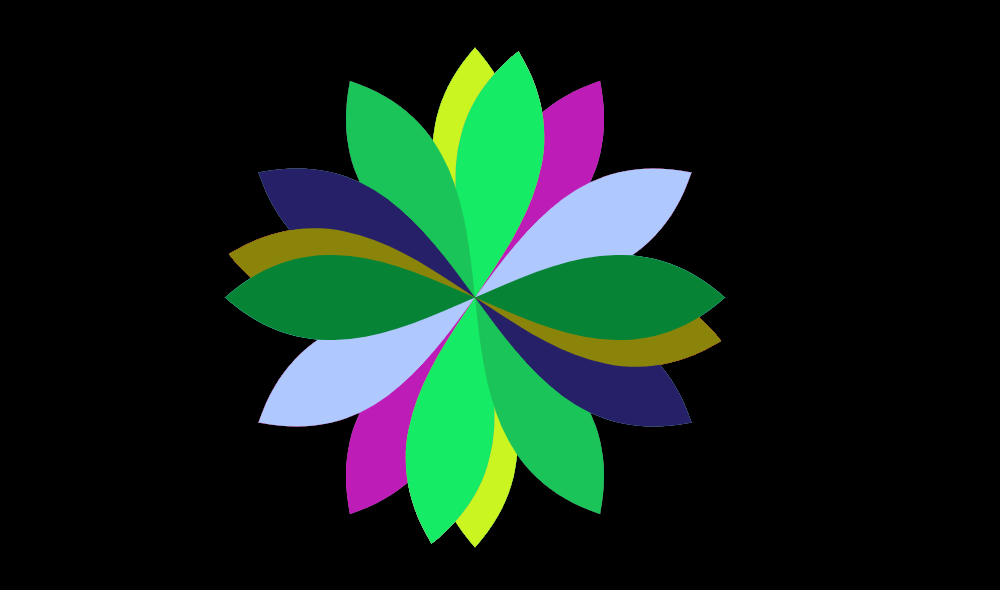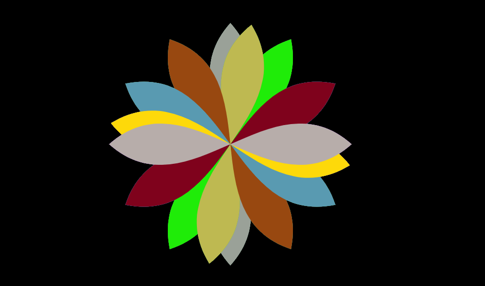 I created 4 quadratic curves. Then on each curve I started a for loop. I the used the stroke method and created radial gradients. I changed the colors with each gradient. Here are 7 examples.