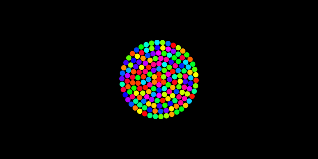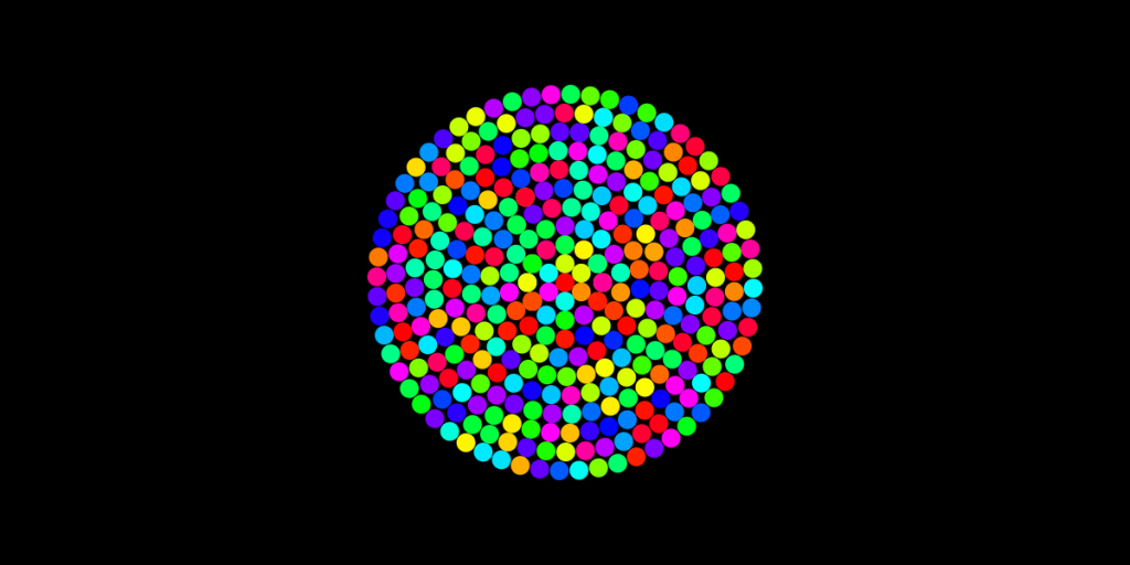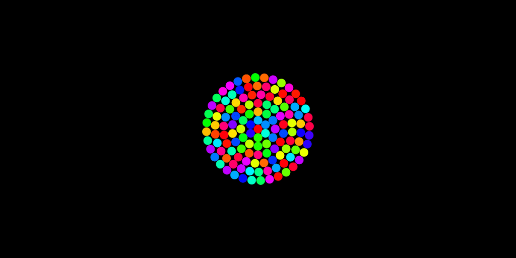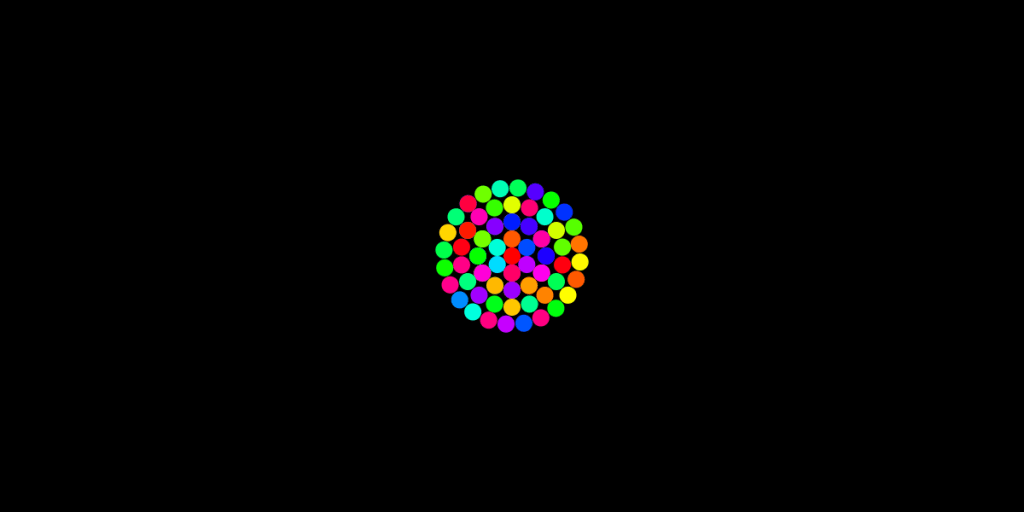 I start out with one circle use a for loop to create more then I pick random colors